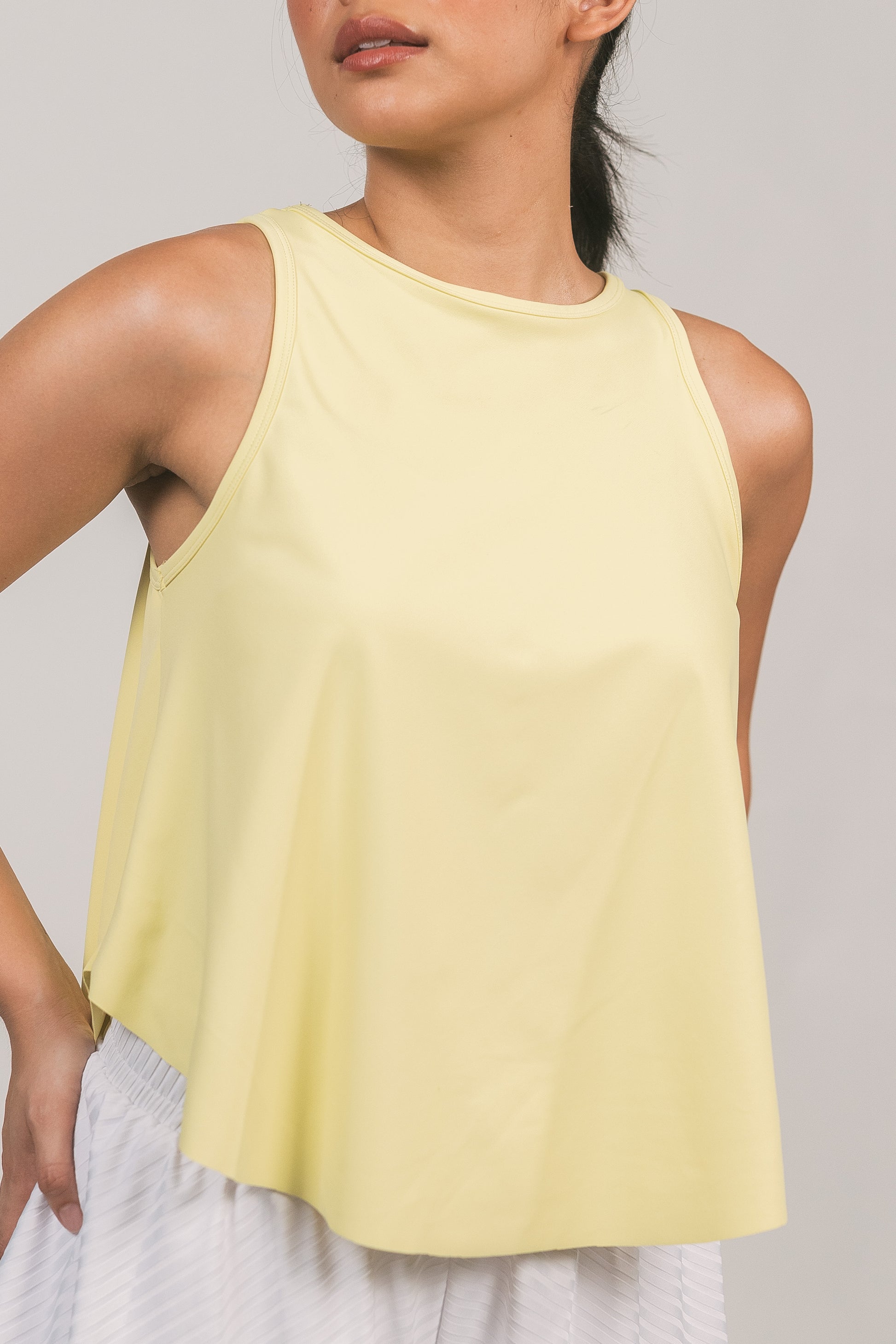 STYLE: Reversible, sleeveless, loose-fit tee