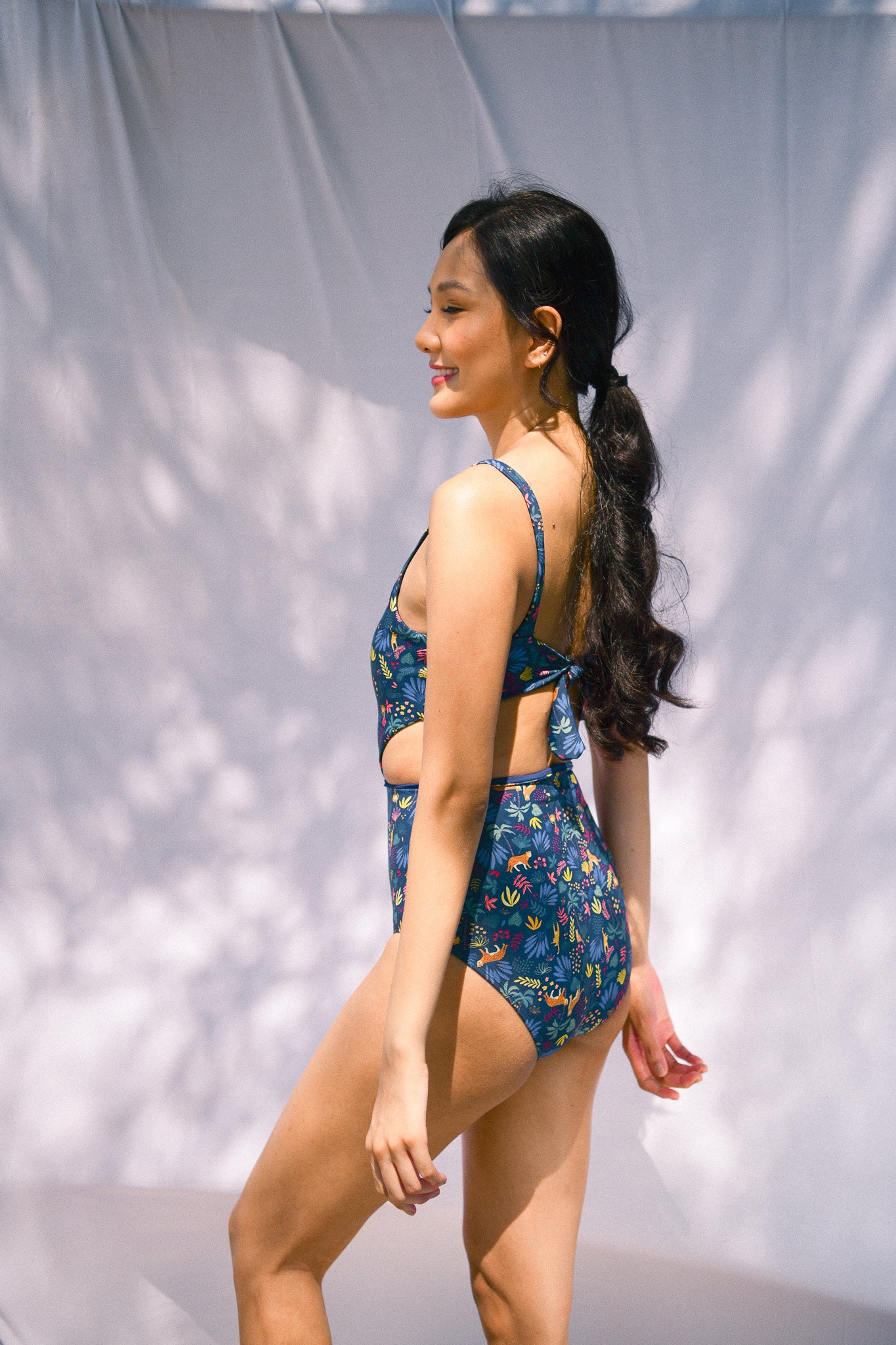 STYLE: One-piece swimsuit with side peek-a-boo and back tie