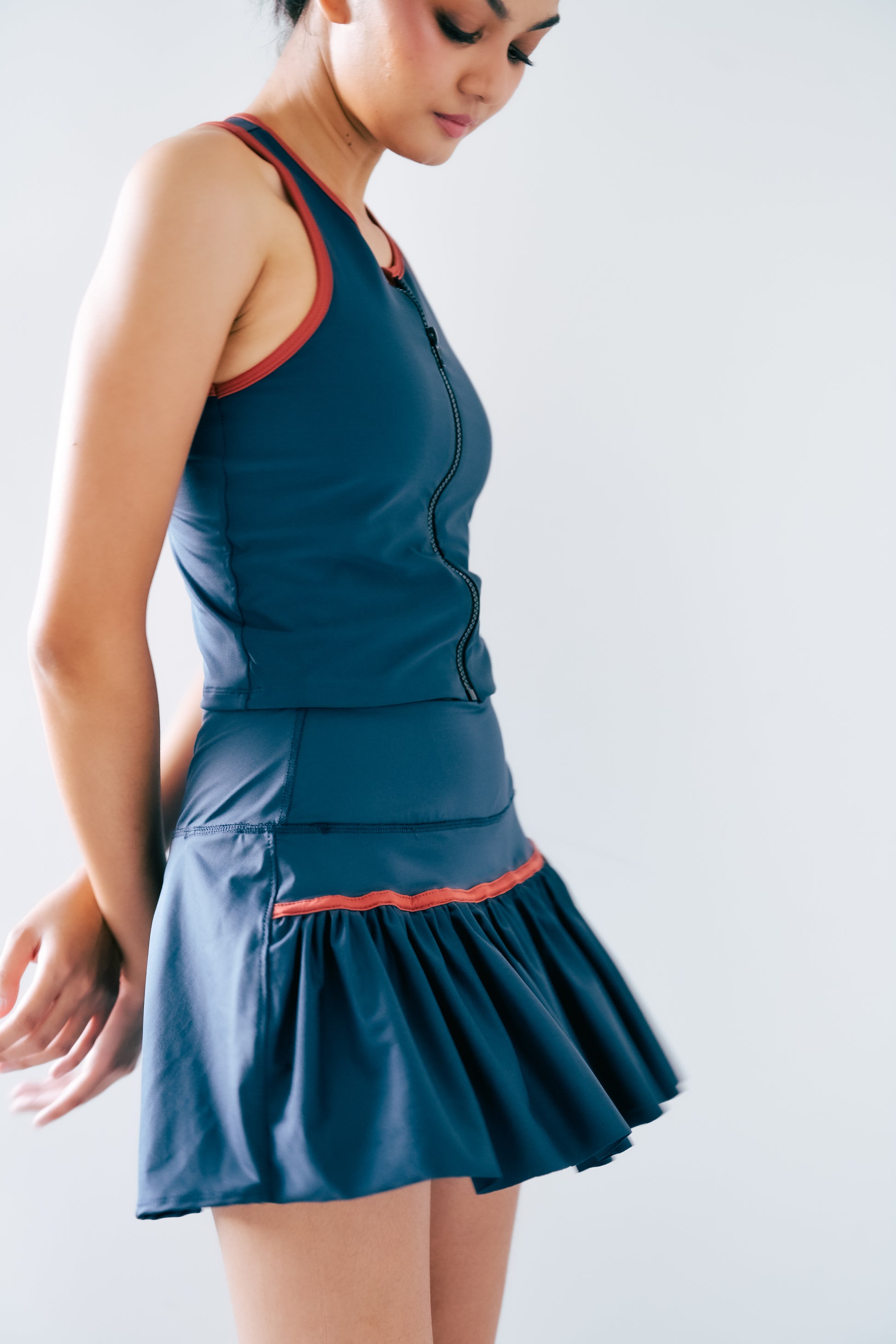 DESCRIPTION: Garterized waist, built-in shorts with side pockets